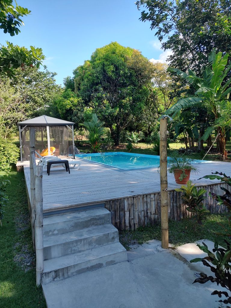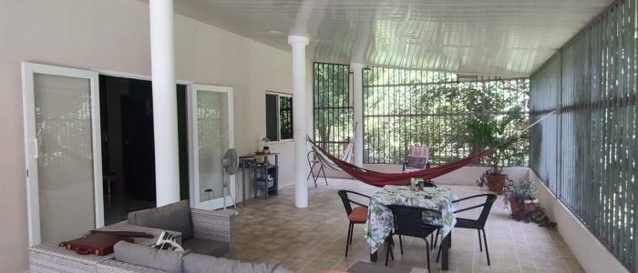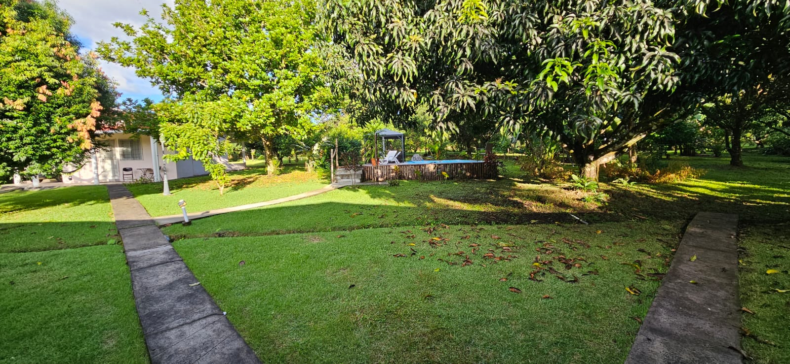 This titled property features three homes and a saltwater pool situated on a gorgeous 5 acre fruit farm conveniently located in the community of El Frances, halfway between Boquete and David, Panama! With 43 varieties of fruit trees, there are also pineapples, ginger, turmeric, vanilla, moringa and many more. One neighbor refers to it as being our botanical garden :). Fully fenced and secured by an electric gate, the private location provides the tranquilo lifestyle that you’re looking for in Panama.